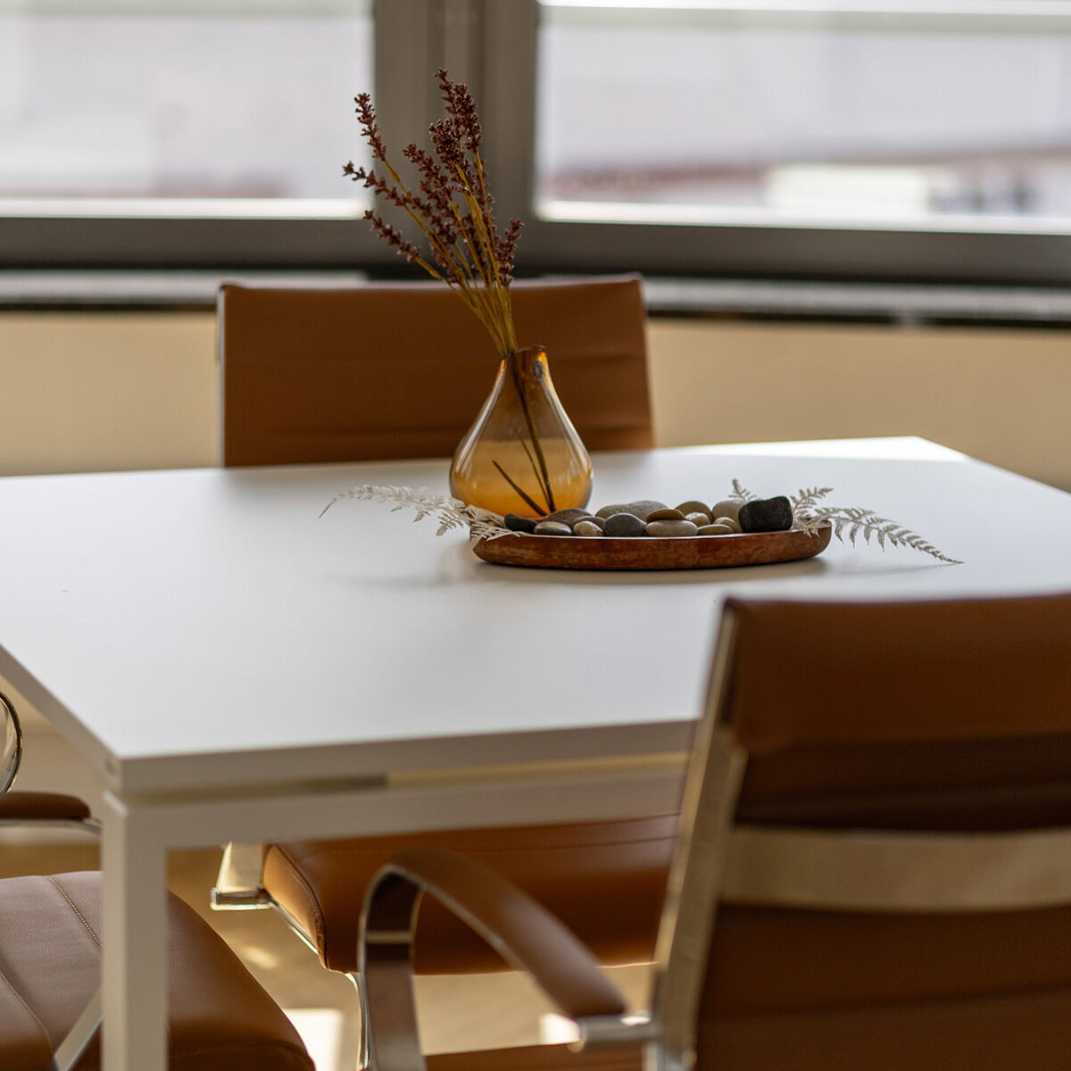 Wir legen viel Wert darauf, Ihnen während Ihrer Fortbildung höchsten Komfort zu bieten. Unsere Seminarräume im fünften Stock sind selbstverständlich per Fahrstuhl zu erreichen. Ein großzügiger Pausenraum mit Stehtischen und Sofas lädt dazu ein, in den Lernpausen zu entspannen und sich mit anderen Weiterbildungsteilnehmern auszutauschen. Auch zwei modern ausgestattete Küchen stehen Ihnen zur Verfügung.