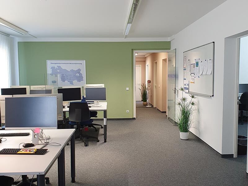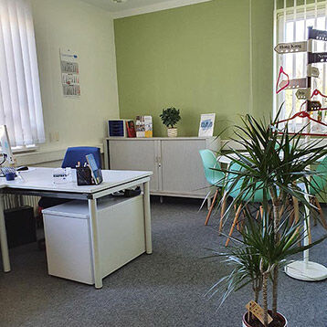 Die Schulungsräume verteilen sich auf die erste und zweite Etage des Gebäudekomplexes „Landsberger Tor“. Farbliche Akzente und Grünpflanzen unterstreichen die freundliche Atmosphäre. Für die kleine Stärkung zwischendurch stehen Kaffeemaschine, Kapselautomat, Wasserkocher und Mikrowelle bereit.